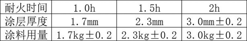 五、耐火時間和涂層厚度及涂料用量參考下表∶